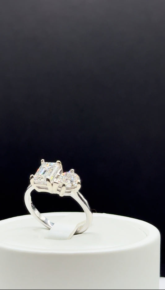 Two-Stone Radiant & Oval Diamond Pinky Ring – 14K White Gold (Nearly 3 CTW)