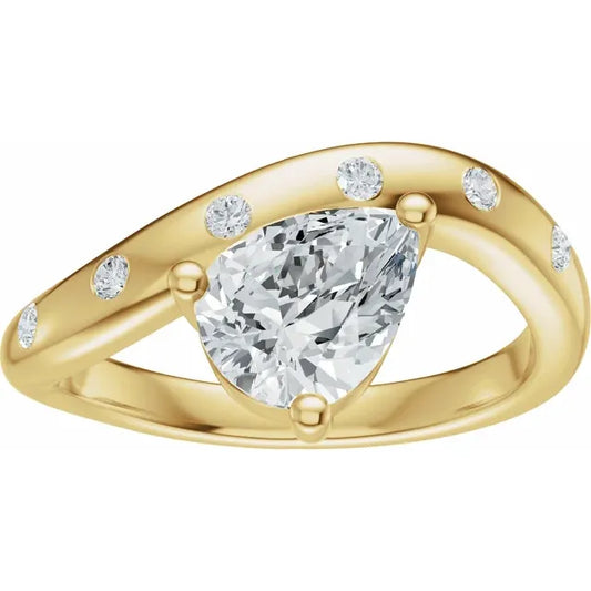 Custom Asymmetrical Pinky Ring – 1ct Pear Diamond in 14K Yellow Gold