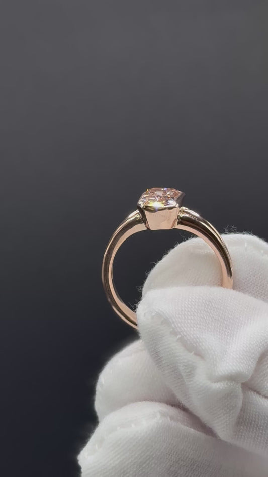 1.71 CT Brownish Pink Radiant Diamond Ring – Double Band Bezel Set in 14K Rose Gold