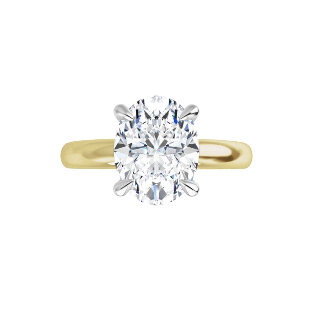 A timeless two-tone solitaire designed to highlight the elegance of an oval diamond. This engagement ring features a rich 14K yellow gold band paired with a contrasting 14K white gold claw-prong head, enhancing brilliance and giving a modern, elevated look. Set with a stunning 2.00 CT lab-grown diamond, this piece is crafted for exceptional sparkle and everyday durability.