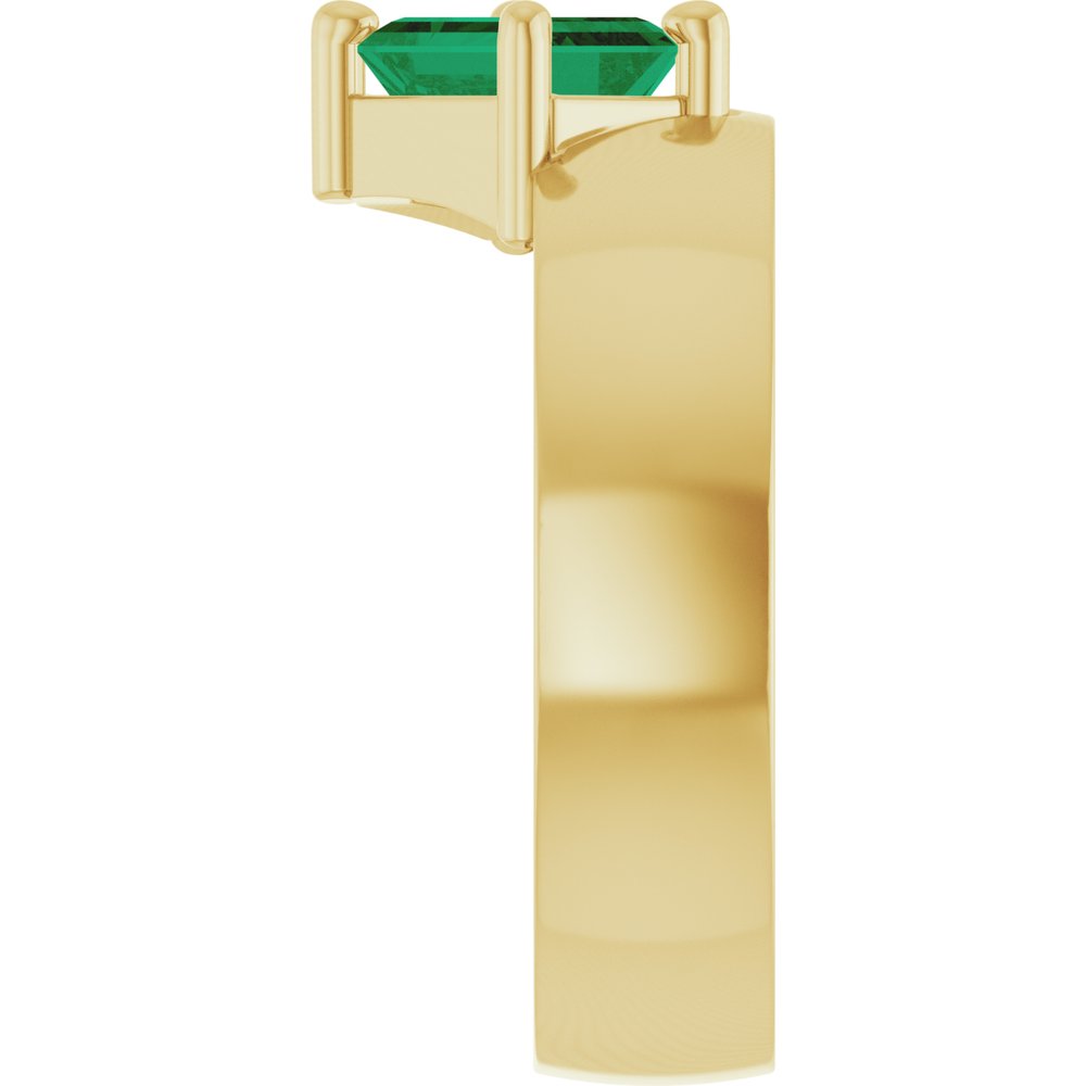 14K ყვითელი ლაბორატორიაში გაზრდილი ზურმუხტისფერი ასიმეტრიული ზურმუხტისფერი სოლიტერის ბეჭედი