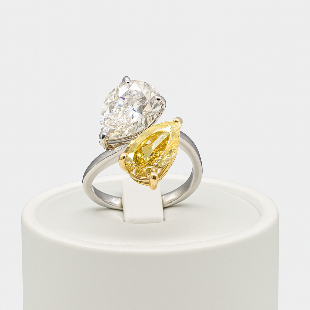 A stunning Toi et Moi design featuring two exquisite pear-shaped diamonds, symbolizing two souls united.