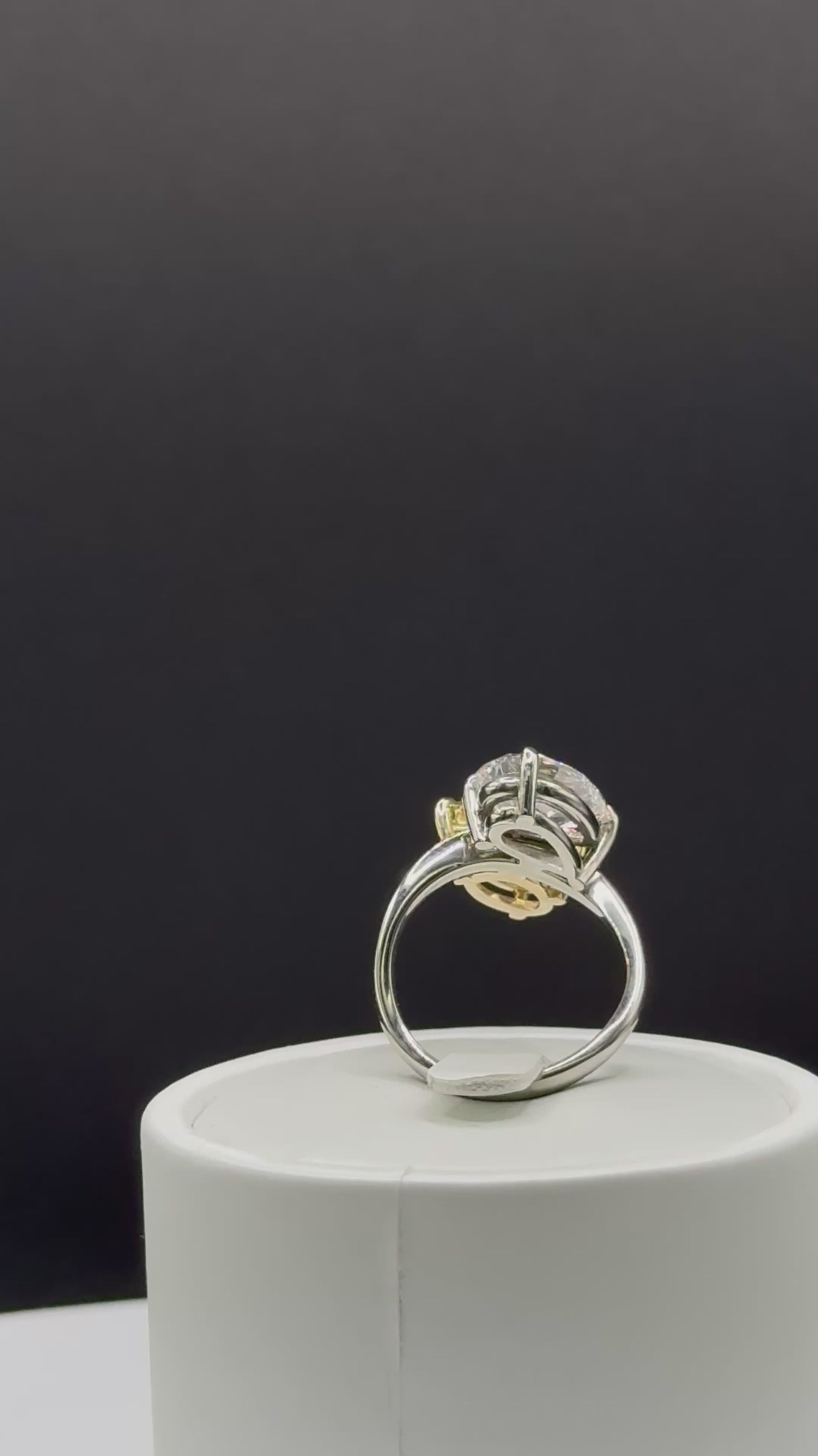Details: Yellow diamond set in a custom yellow gold basket and prongs to enhance its vivid color contrast.