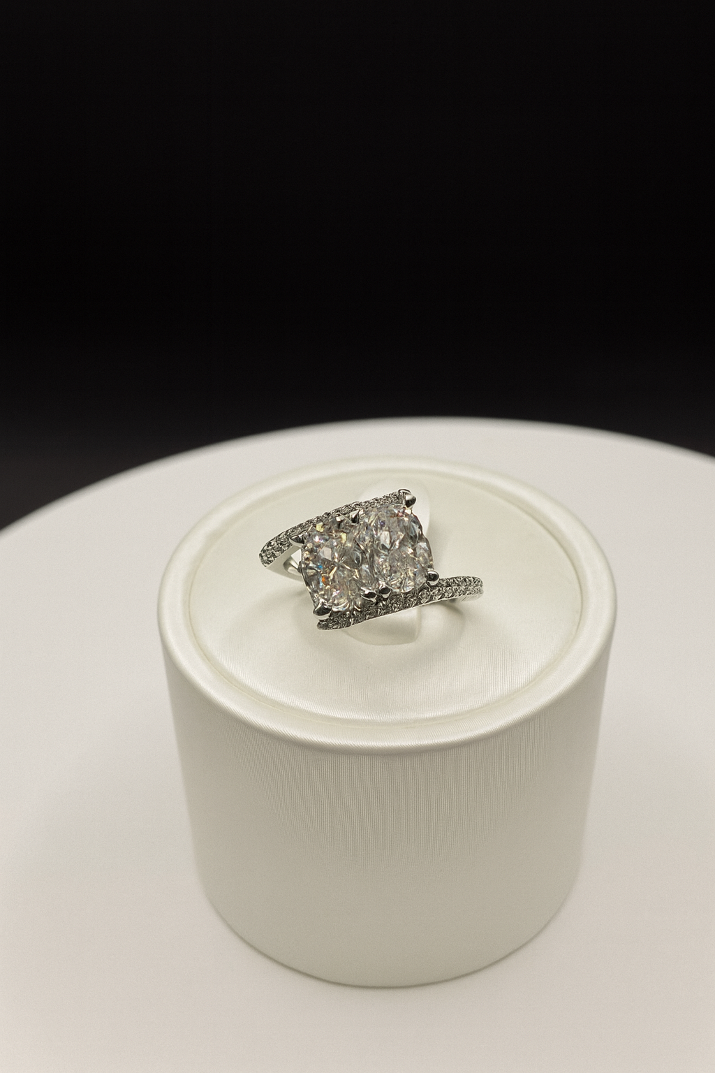 Two-Stone Radiant & Oval Diamond Pinky Ring – 14K White Gold (Nearly 3 CTW)