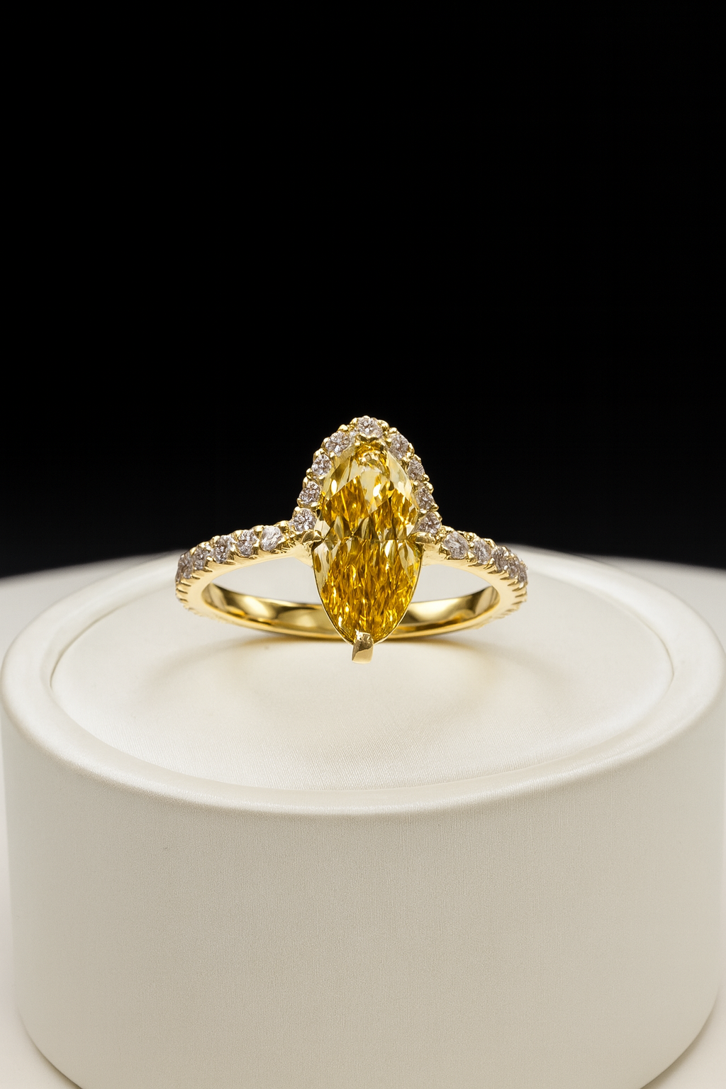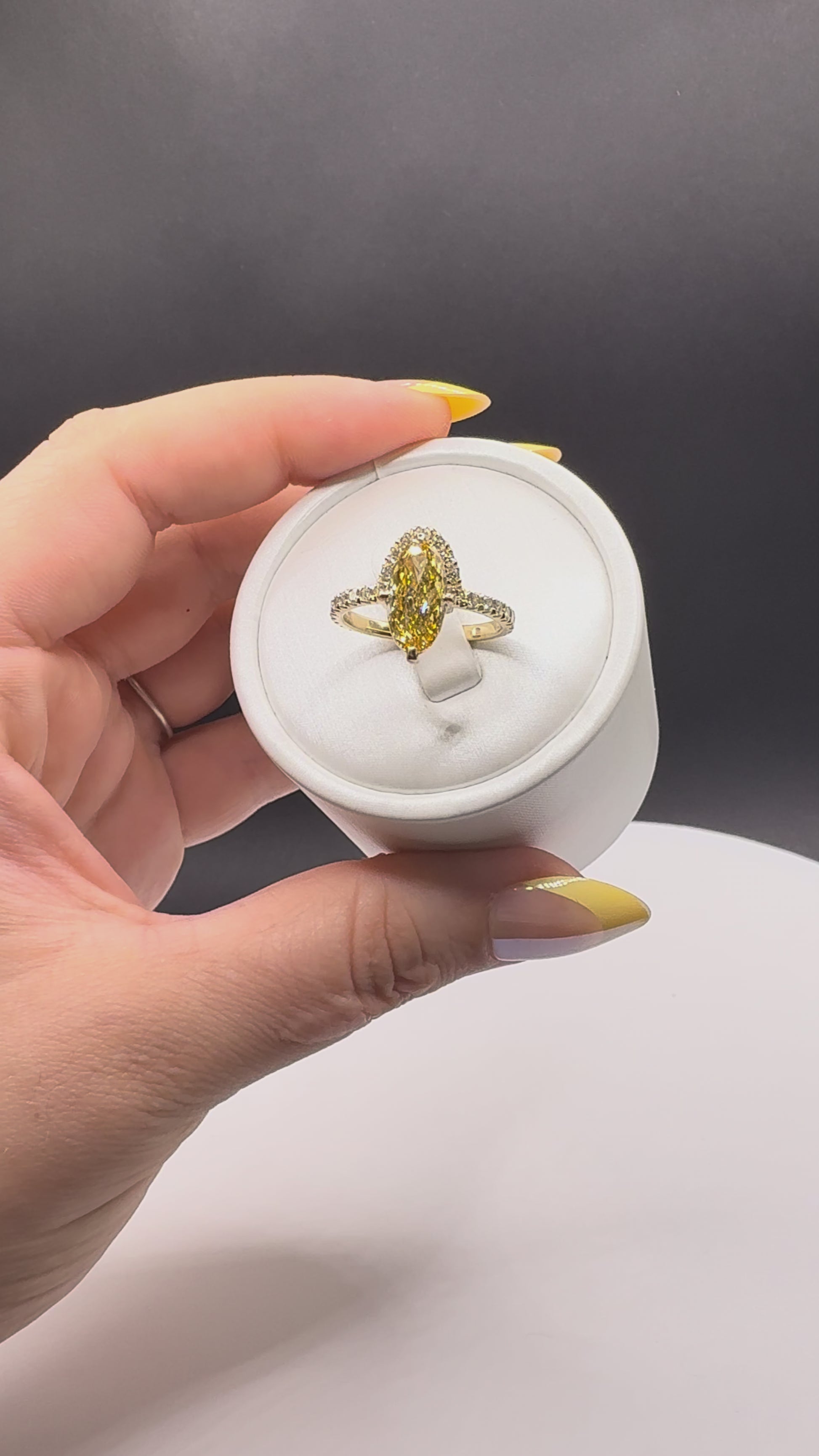 Half Moon & Oval Fancy Vivid Yellow Lab Diamond Ring – 2.01 CT – Ready to Ship